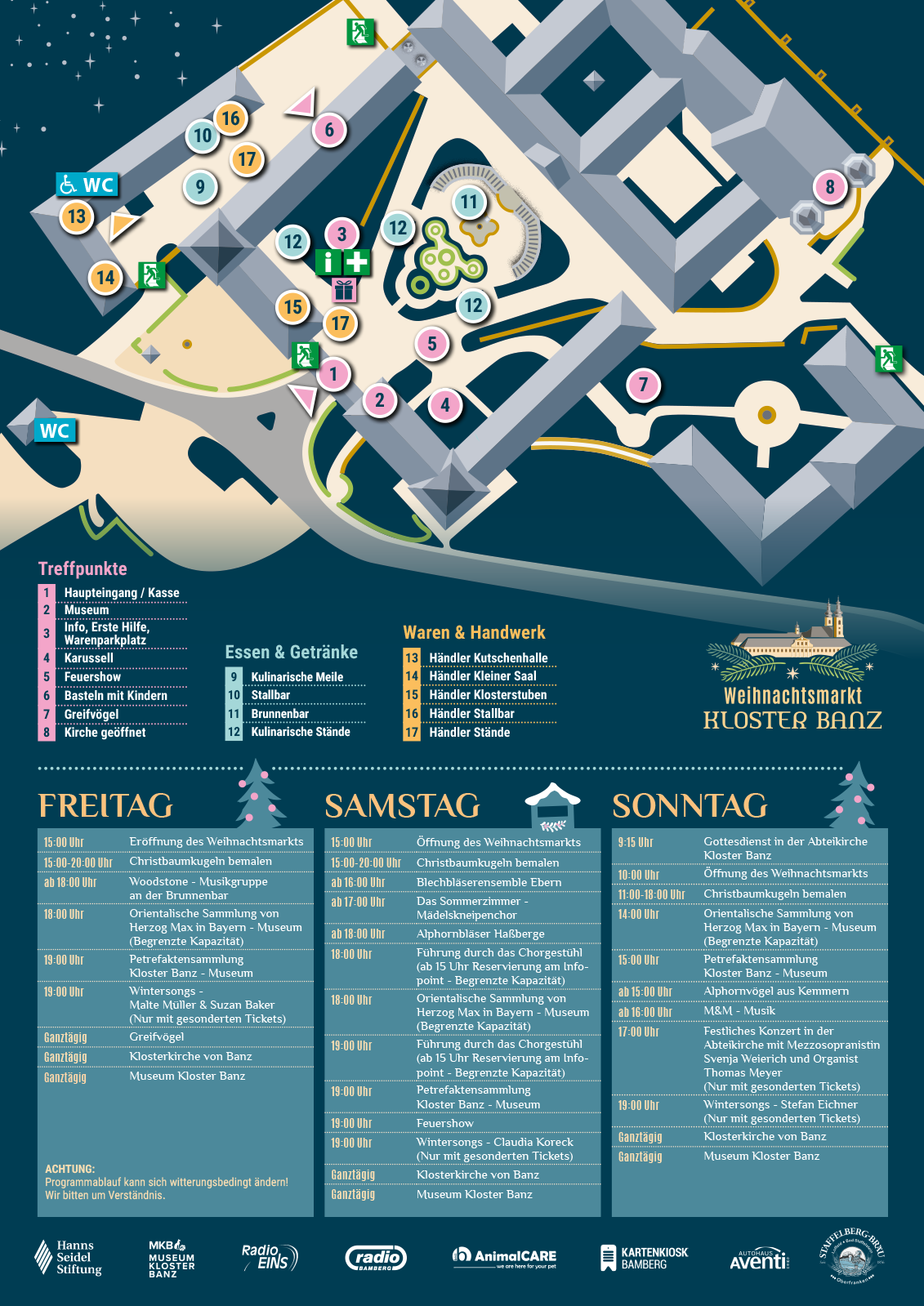 - Führung durch die Sonderausstellung „Zeichen der Zeit – Die Konservierung und Restaurierung des Chorgestühl der Klosterkirche Banz“ um 18 & 19 Uhr (Plätze limitiert, Reservierung ab 15 Uhr am Infopoint)