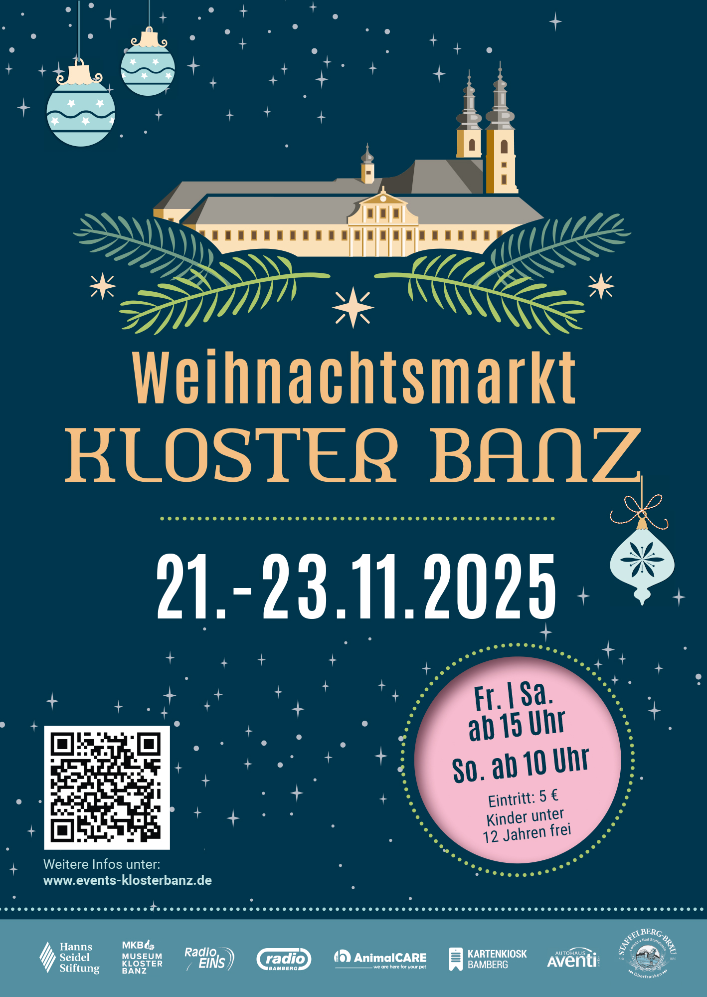 Tauchen Sie mit uns ein in die wohl schönste Zeit des Jahres – umgeben von den historischen Mauern des Klosters Banz. Drei Tage lang erwartet Sie eine stimmungsvolle Atmosphäre voller Lichterglanz, duftender Leckereien und weihnachtlicher Klänge.